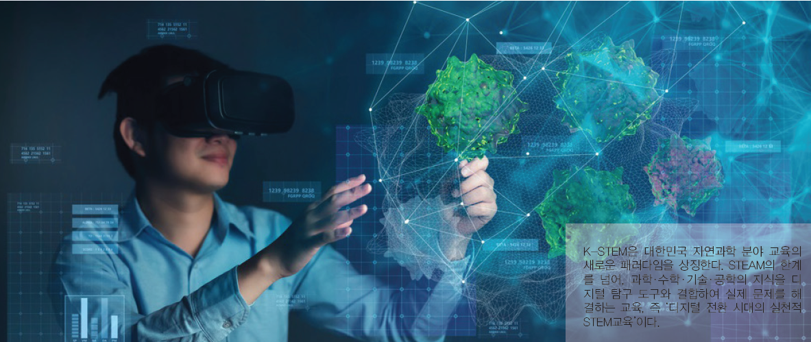 K-STEM의 출발점은 기초과학 교육의 회복이다. K-STEM에서 ‘S’(Science)는 단순한 한 교과가 아니라, 문제 인식과 탐구 설계의 출발점이다. K-STEM은 수학 과학과 같은 형이상학적 교과의 어려움을 디지털 탐구 기반의 시각화 교육으로 극복할 수 있다. AI 시뮬레이션이나 데이터 분석 도구를 활용하면, 분자 구조나 반응 속도 같은 개념을 직관적으로 탐구할 수 있으며, 사회문제와 연계한 프로젝트를 통해 ‘삶 속의 과학’으로 경험할 수 있다.